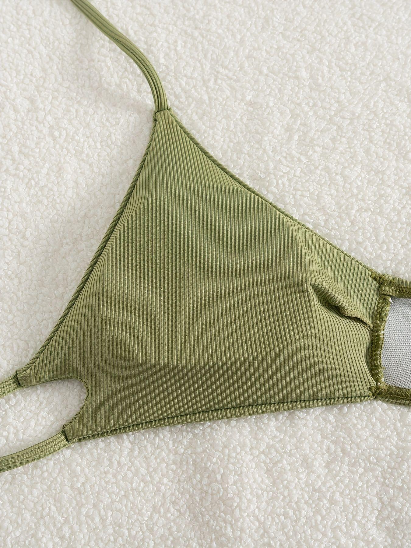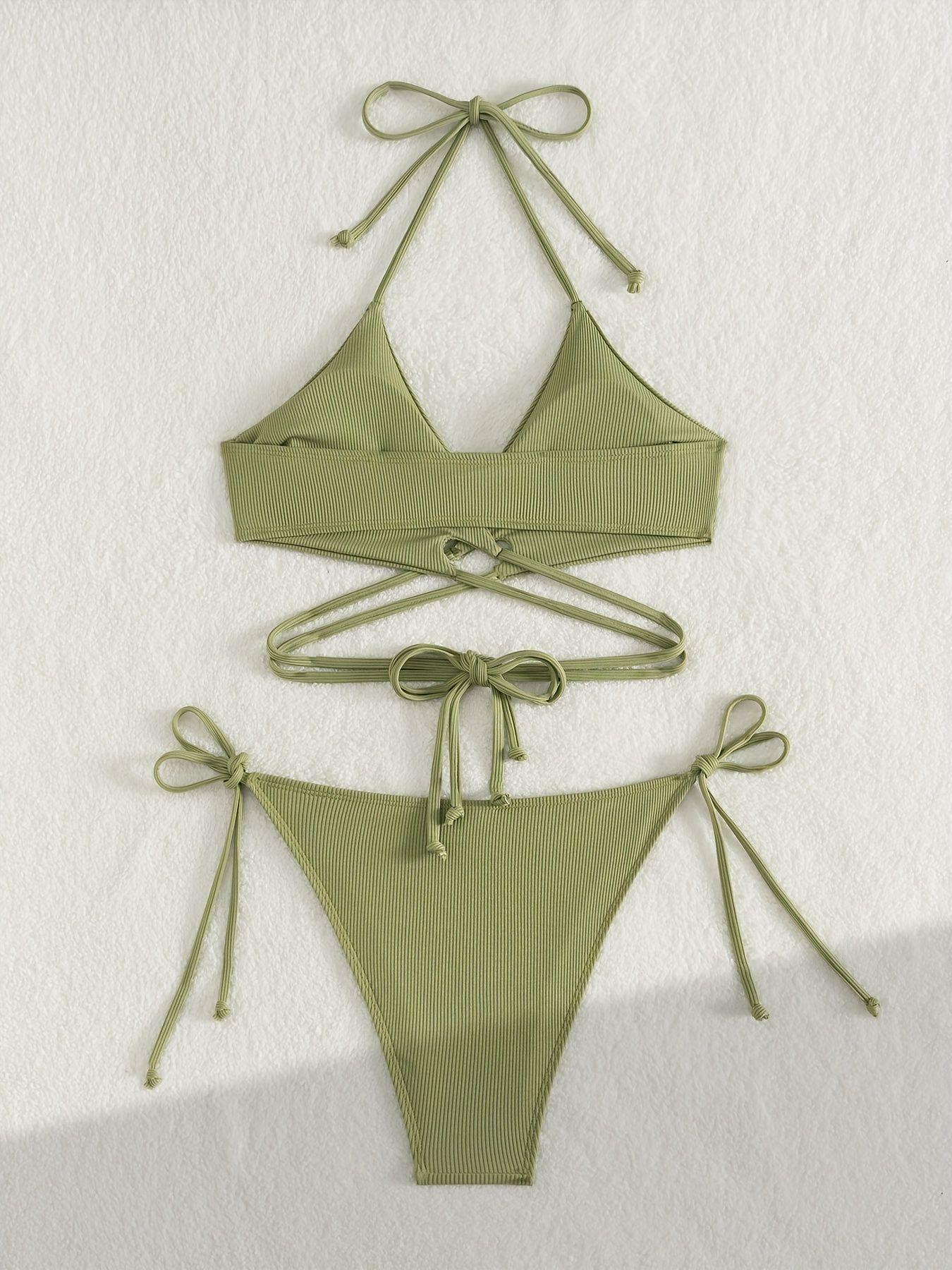 Bikini Halter Cross Split Sexy Cropped Outfit Three Piece Sets Swimwear Swimsuit Women